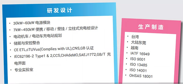 飛宏科技憑借著享譽全球的電能轉(zhuǎn)換技術(shù),成功研發(fā)出一系列高效節(jié)能的電動車充電解決方案,并于 2013 年前開始琢磨電動車系統(tǒng),致力深耕電動車充電樁市場,至今已成為加拿大電動大巴廠的充電樁供應(yīng)商, 更獲得中國、日本、美國和歐洲多家國際知名車廠與營運商的肯定。